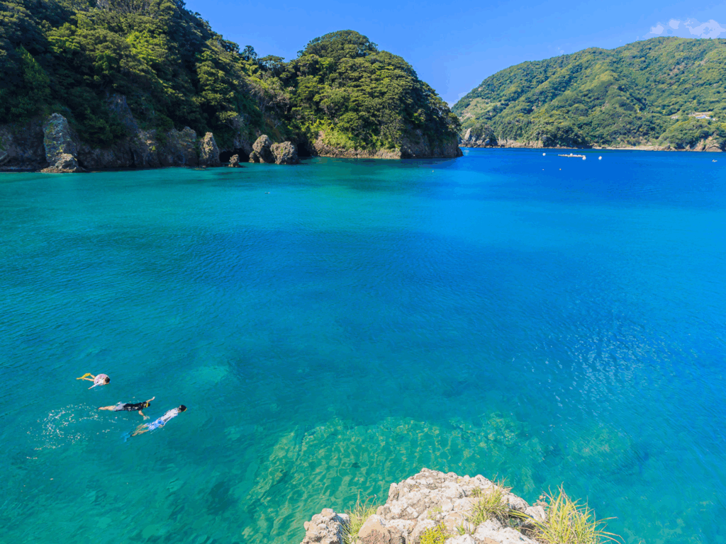 穴場のおすすめ、石浜ですが透明度が高く、シュノーケリングに最適。沖合に浮かぶ小さな島まで泳げば探検気分!大人も子どもも夢中になれるスポットです。