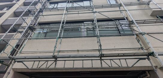 丸上別館のメンテナンスのため、防水塗装工事をはじめました。約ひと月の工期を予定し
