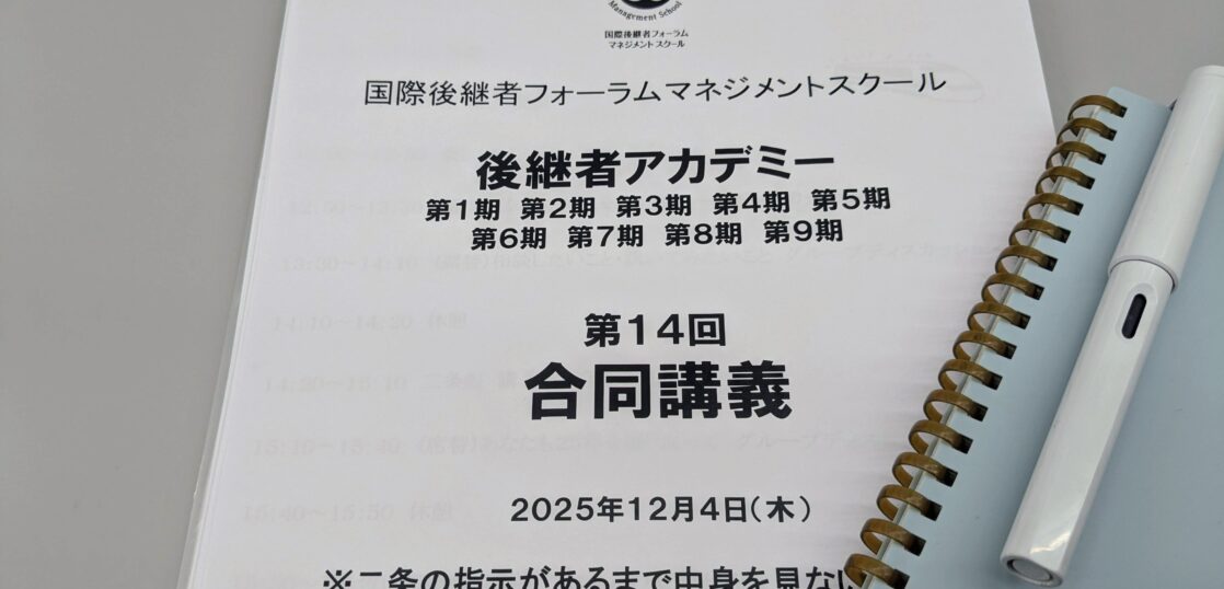 昨日は後継者アカデミーの合同講義に出席しました。久しぶりに二条先生のお話を伺い、ノートもたくさん取りながら学びの多い時間になりました。