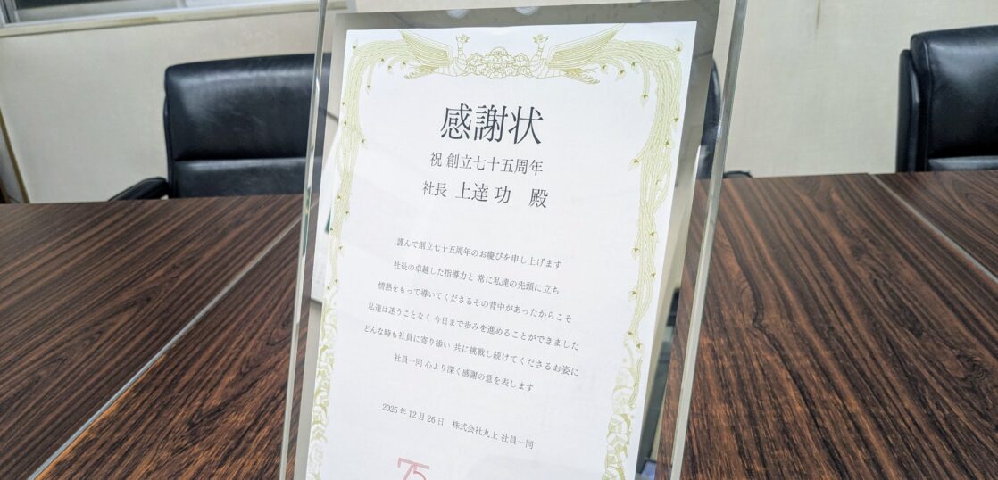 この感謝状に恥じないように。そして、社員一人ひとりが「この会社で働いてよかった」と思える場所であり続けられるよう今年も、愚直に、頑張ってまいります。