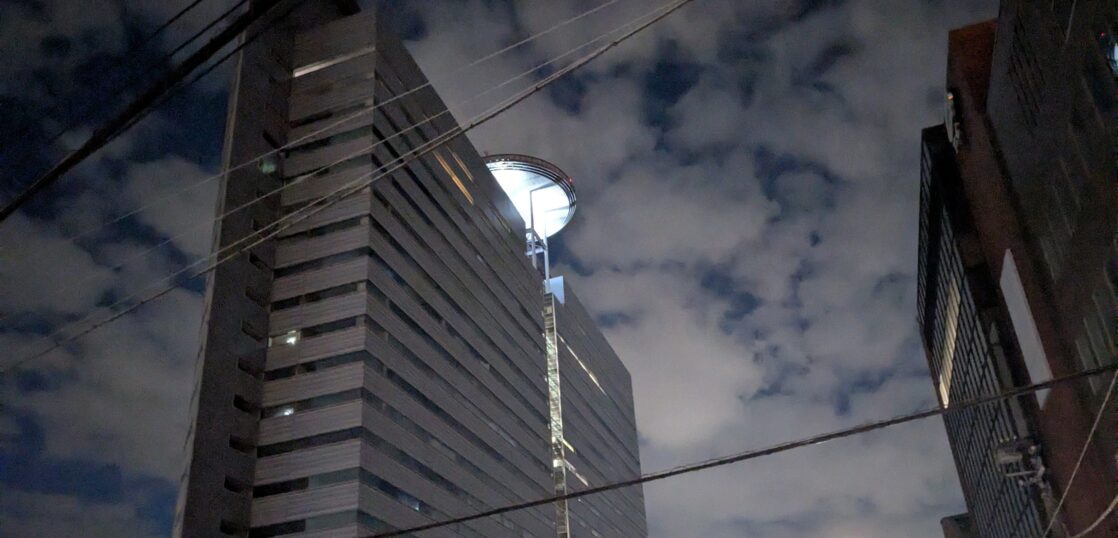 この季節の早朝出張は、まだ夜明け前。写真は、駅に向かう途中の目黒雅叙園アルコタワーです。「今日が始まる前の時間」という感じがします。