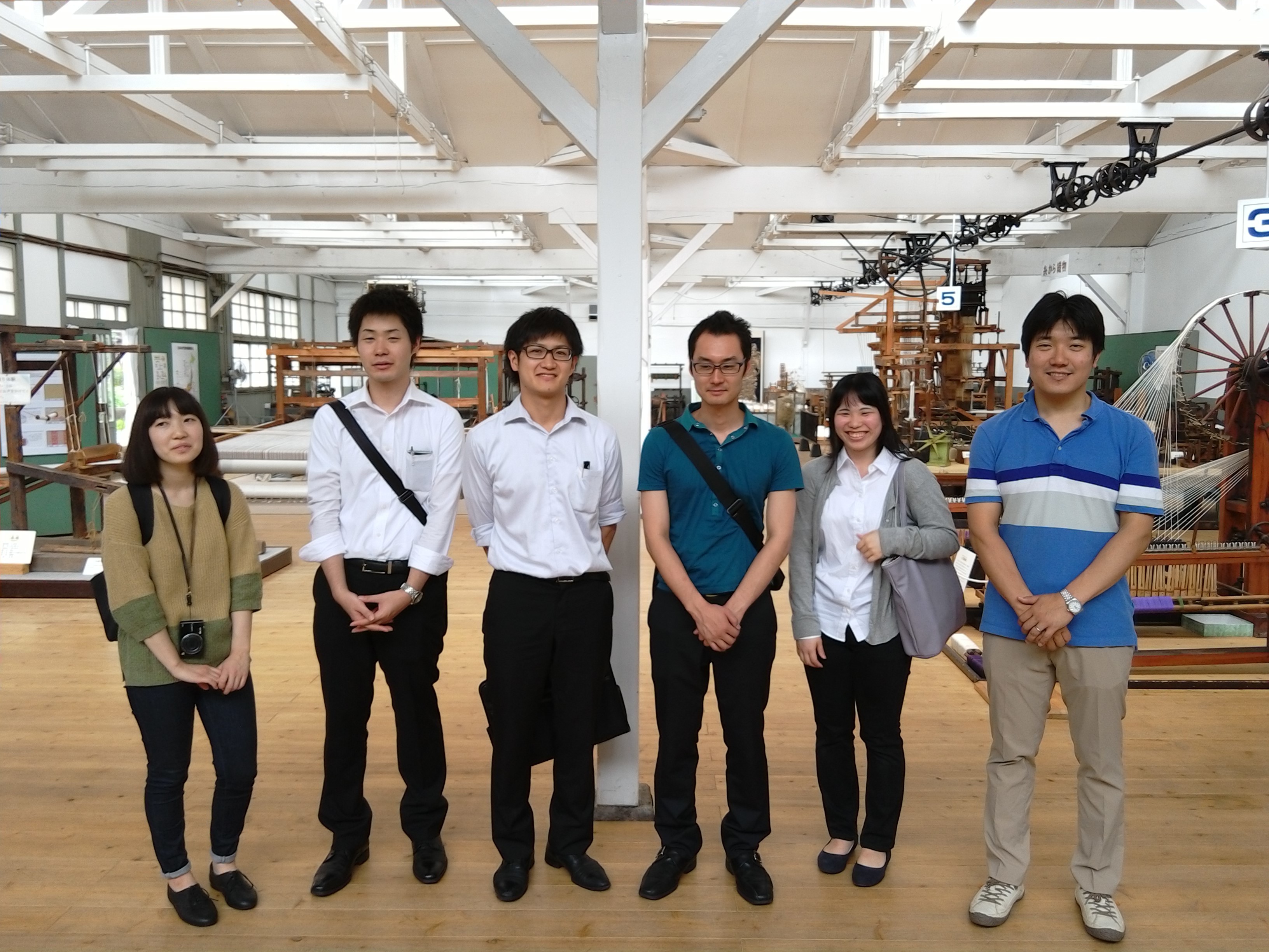 丸上では僕が入社したころから桐生の産地研修をしており、目的は織物の基本的な知識を取得するためで、ごく初歩の研修コースとなります。今回は今年新卒採用の日比野さん、福田さん、大澤さん、長柄さんと、2月に中途入社した若山さん。それに本人の希望により入社3年目の細谷さんと僕の7人での研修となりました。