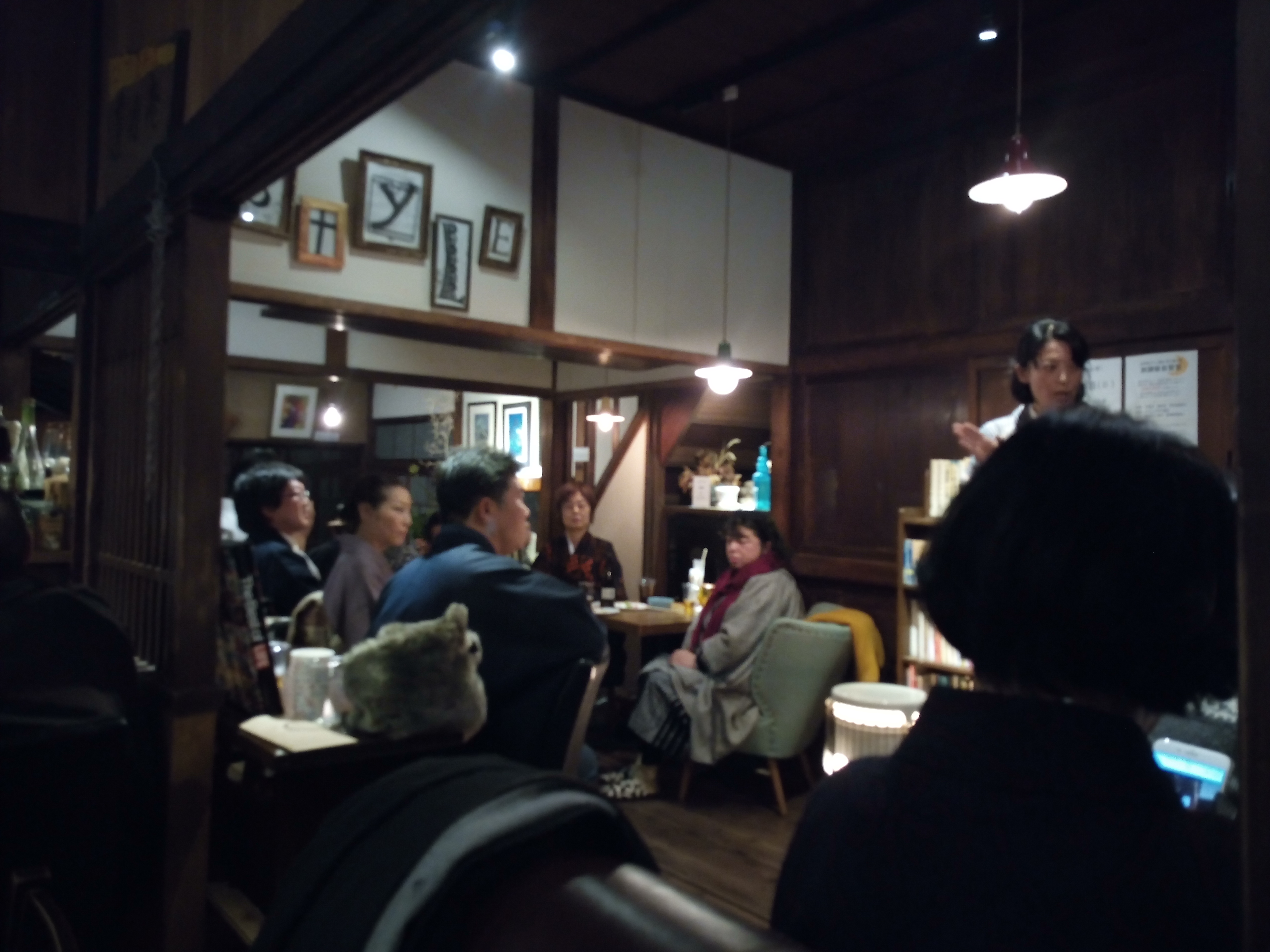 開催場所の”蓮月”(http://rengetsu.net/)というのは池上本門寺そばの古民家カフェです。2014年まではそば屋さんとして営業されていましたがご主人が引退され、取り壊しの直前までいったそうです。ところが、この建物を残したいという多くの方の協力により、築90年の木造建築を改修して古民家カフェとして生まれ変わったそうです。