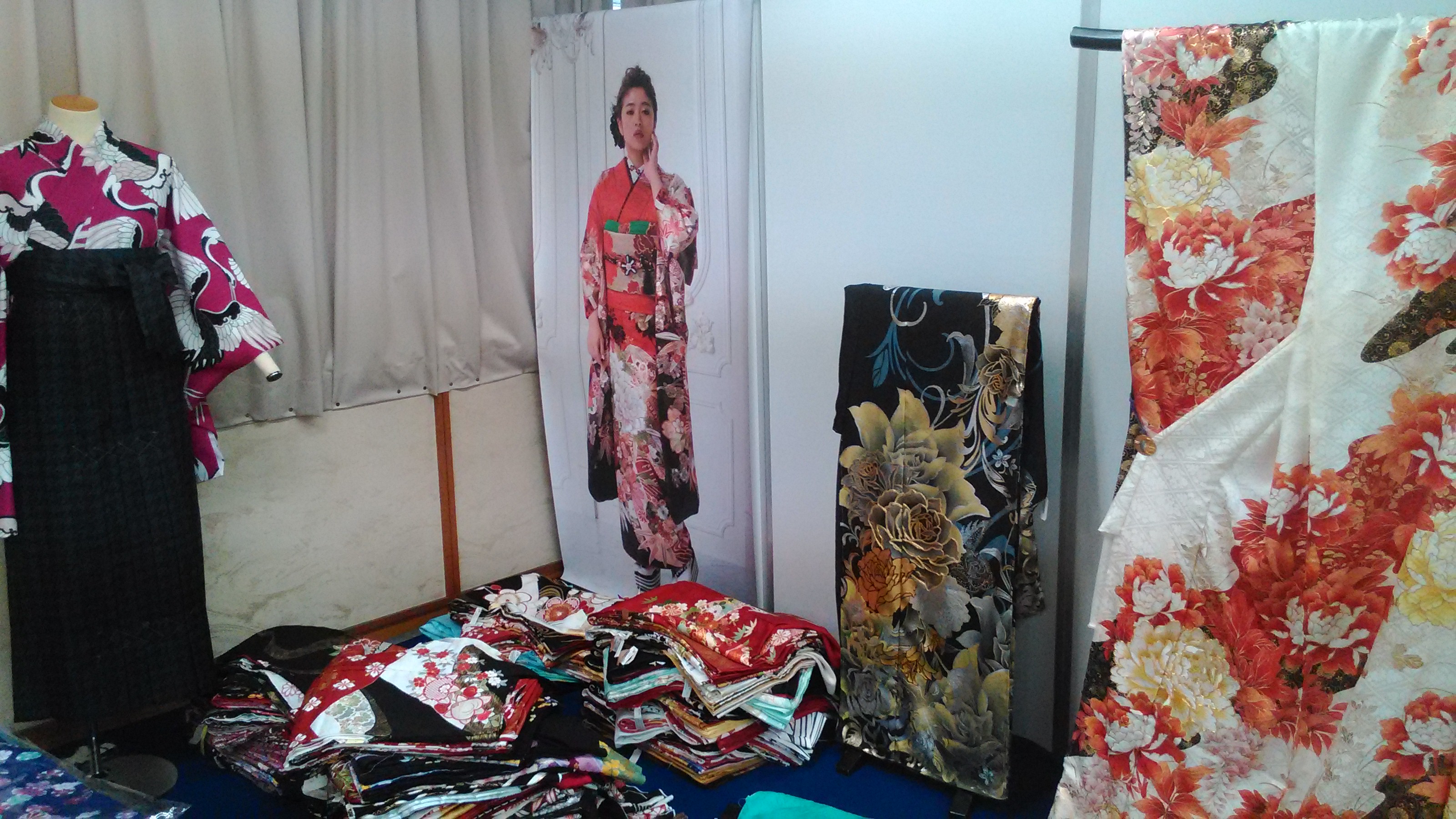 今朝、会社の様子をアップしましたが、続いて別館の準備の様子です。別館4階は振袖、七五三の展示となります。