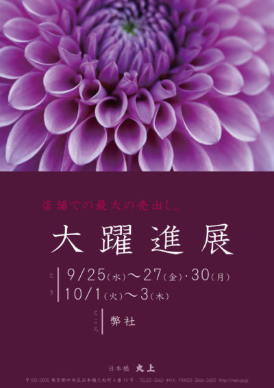 いよいよ明日から”大躍進展”開催です。”大躍進展”は本社で開催する最大規模の売出となり、今回は改装された別館のお披露目もさせていただきます。